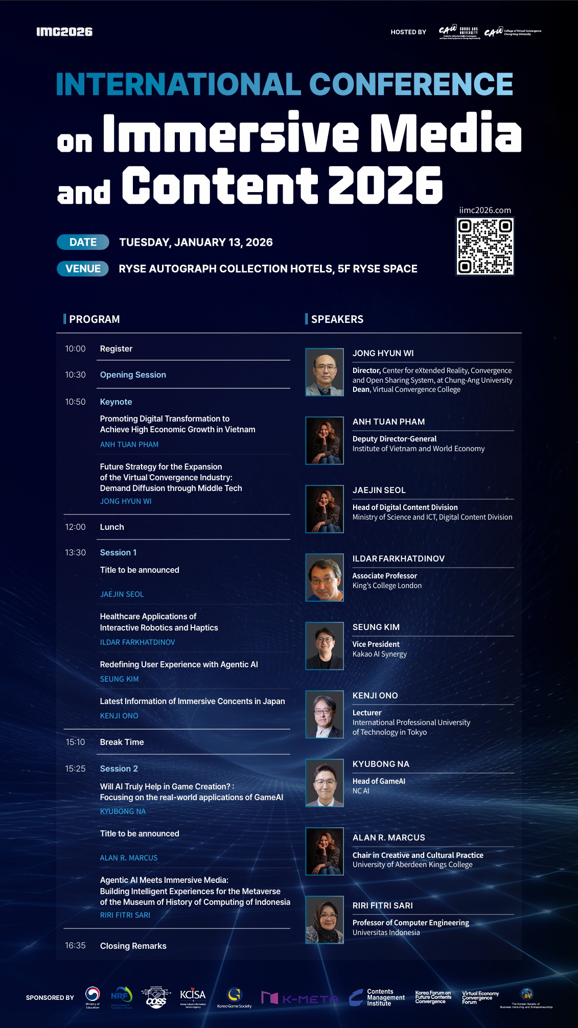 "Convergence of Immersive Media and AI: Hyper-Realistic Content and Interactive Experiences"를 주제로 ⌜실감미디어와 콘텐츠 국제 컨퍼런스 2026⌟을 개최합니다.